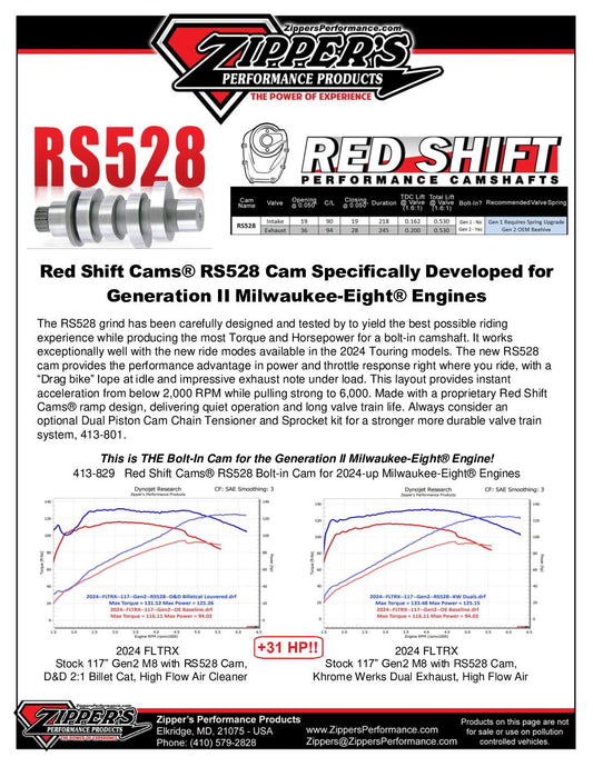Red Shift Cams® RS528 Cam Specifically Developed for Generation II Milwaukee-Eight® Engines