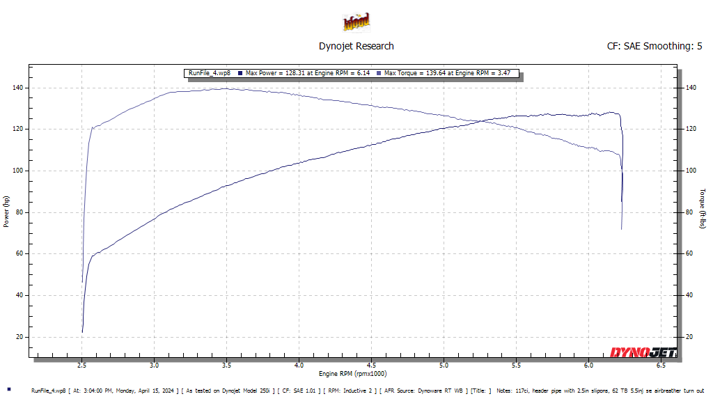 | Mid/High. This cam needs a top performing exhaust and intake to see it’s true potential, and also responds very well to a larger throttle body. Power range between 2500 to 6000+. It performs extremely well in the factory 107/114/117 and has also excelled in 124/128 Big Bore builds. |