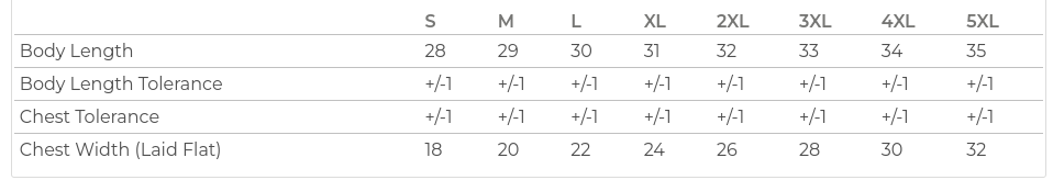 - Increased body and sleeve lengths to accommodate shrinkage.